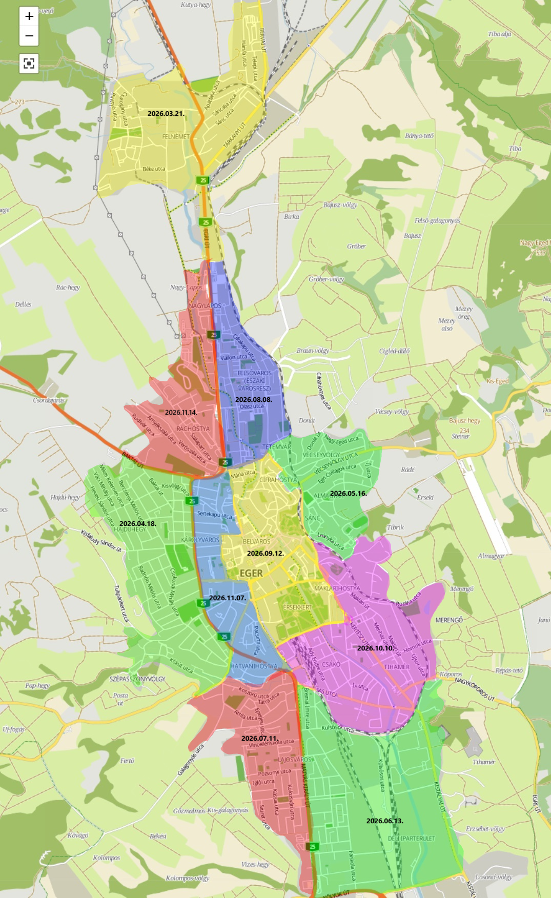 Eger városában az előző évekhez hasonlóan körzetenkénti bontásban végezzük a közterületi lomtalanítást. A körzetenként szereplő utcák listája egyaránt vonatkozik a társasházakra (bejelentési kötelezettség nincs), és a családi házakra is.